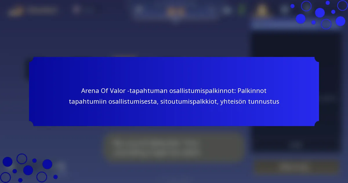 Arena Of Valor -tapahtuman osallistumispalkinnot: Palkinnot tapahtumiin osallistumisesta, sitoutumispalkkiot, yhteisön tunnustus