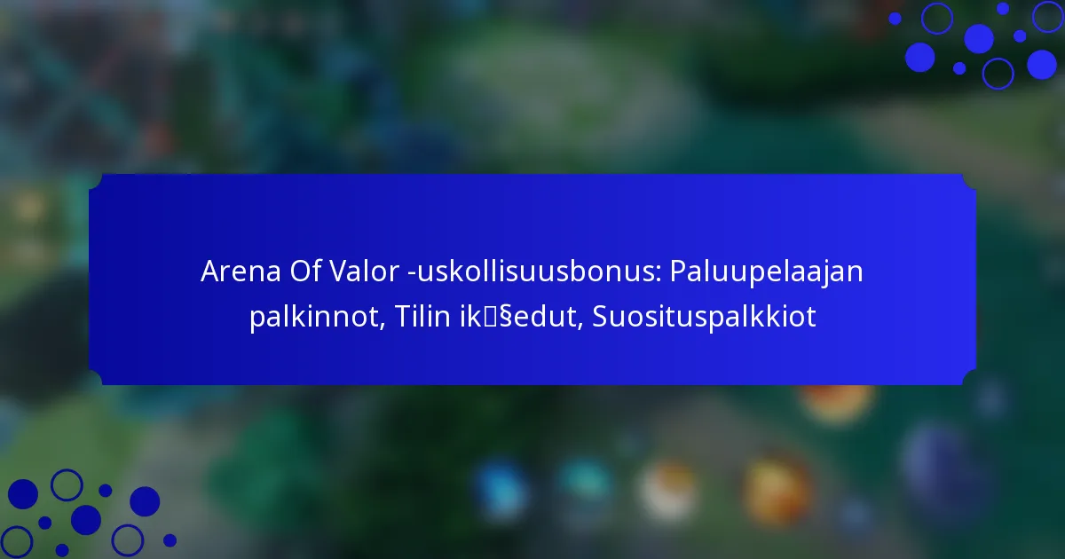 Arena of Valor tarjoaa joukon uskollisuusbonuksia, jotka on suunniteltu kannustamaan palaavia pelaajia, mukaan lukien pelin sisäistä valuuttaa, sankareita ja muita arvokkaita esineitä. Palkinnot vaikuttavat tilin ikään, ja pidempään pelanneet saavat…