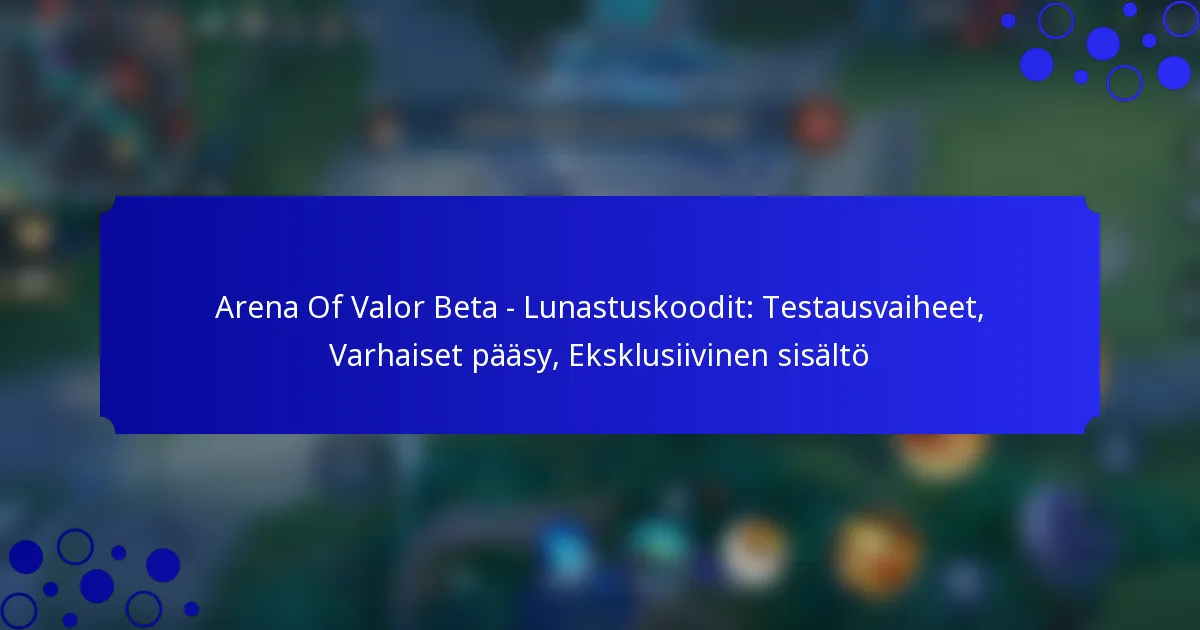 Arena Of Valor Beta – Lunastuskoodit: Testausvaiheet, Varhaiset pääsy, Eksklusiivinen sisältö