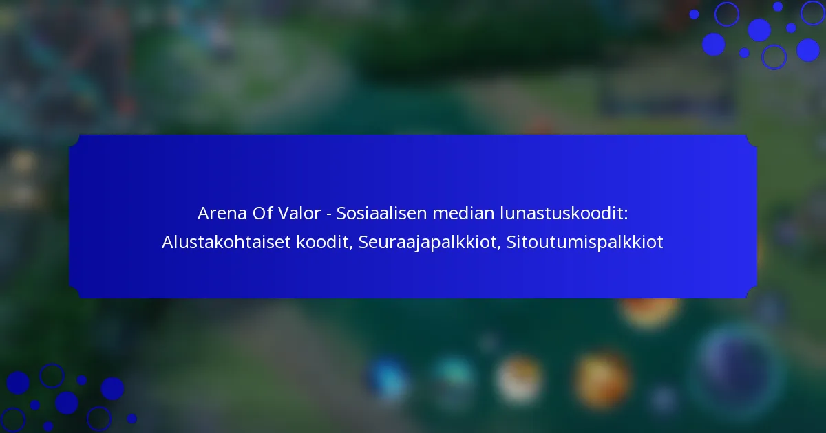 Arena Of Valor – Sosiaalisen median lunastuskoodit: Alustakohtaiset koodit, Seuraajapalkkiot, Sitoutumispalkkiot