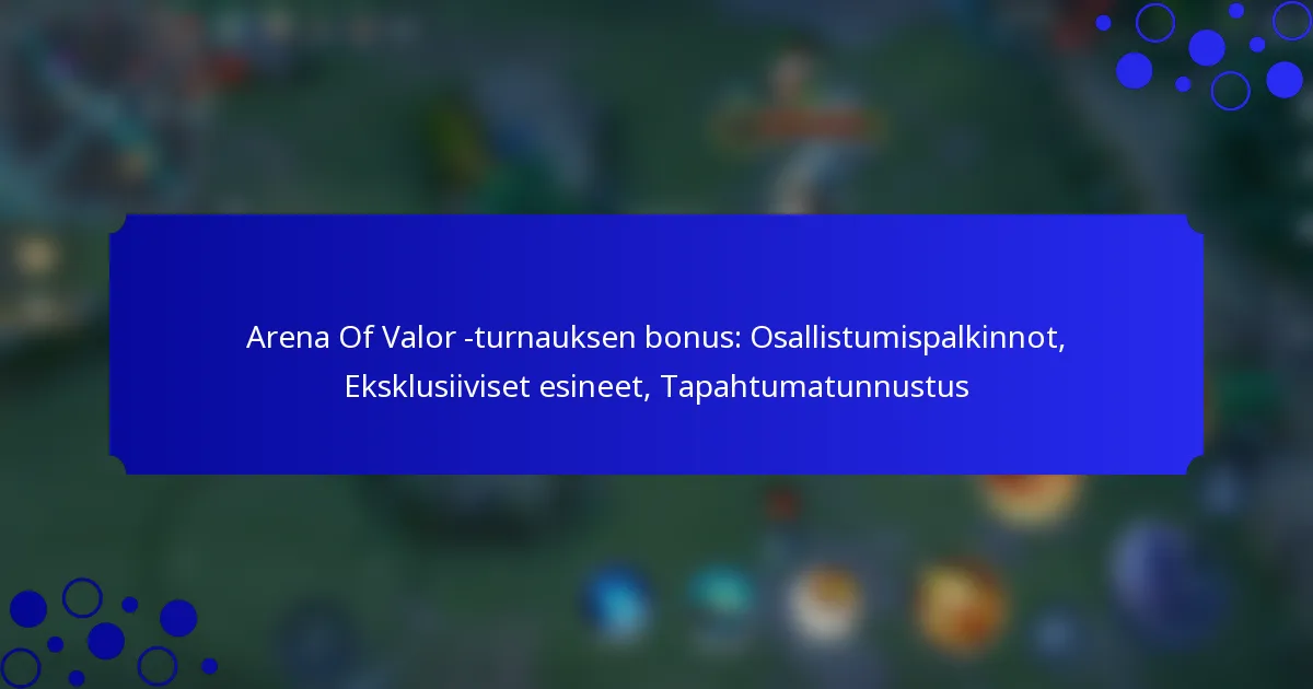 Arena Of Valor -turnauksen bonus: Osallistumispalkinnot, Eksklusiiviset esineet, Tapahtumatunnustus