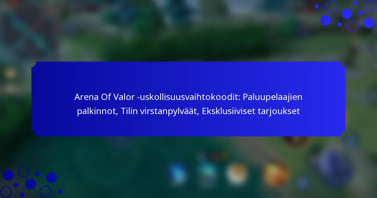 Arena Of Valor -uskollisuusvaihtokoodit: Paluupelaajien palkinnot, Tilin virstanpylväät, Eksklusiiviset tarjoukset
